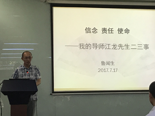 党支部副书记鲁闻生以获得二等奖的征文“信念 责任 使命——我的导师江龙院士二三事”为题进行了演讲,讲述了有着六十多年党龄的江龙院士在日常工作中的几件事情,反映了江先生几十年如一日,始终把坚定的理想信念摆在突出的位置,坚守信念执着前行,经历霜寒孕育硕果的先进事迹。
