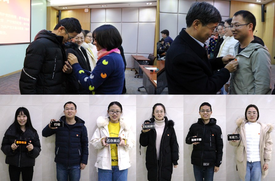 会议首先举行了佩戴党徽仪式。党委委员宋延林研究员、党总支书记李明珠研究员为本年度新转入实验室的党员佩戴党徽。新转入的六名党员围绕自己在学业上奋斗的目标关键词发言,分别以“蓄势待发”、“行动”、“志存高远”、“快乐科研”、“坚持不懈”、“有能力”等关键词锚定自己近期的目标。宋延林代表党总支对新转入的党员表示热烈欢迎,并结合这些关键词寄语绿色印刷全体党员:希望大家坚定理想信念,做德才兼备的有用之才,追求上“立德、立功、立言”,生活上“勤俭节约”,事业上“刻苦钻研”。同时在独创性上下功夫,要敢于提出新理论、开辟新领域,脚踏实地,谦虚谨慎。随后,李明珠带领全体党员重温了入党誓词。党旗下的庄严宣誓,提醒着每一位党员要记得曾经对党做出的庄严承诺和保证,不忘初心,牢记使命,用自己的实际行动践行党员先进性。接着,党总支副书记王丽华作专题党课,与全体党员共同学习了党的十九届五中全会的精神实质和丰富内涵。最后,全体党员填写了化学所基层组织建设年活动测评表。