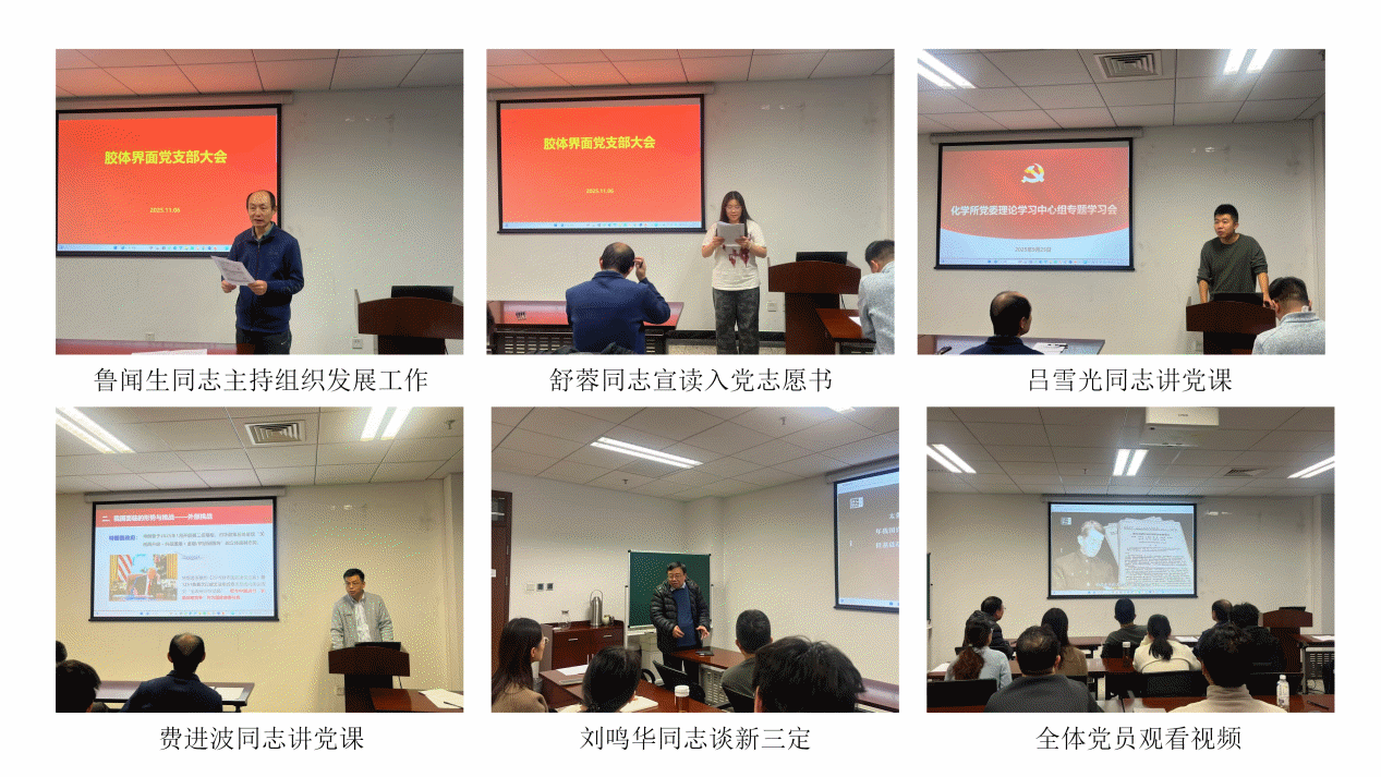 为进一步加强支部建设,提升党员政治素养与思想觉悟,2025年11月6日下午,胶体界面党支部在6号楼922会议室召开党员大会,开展党员发展与学习教育,会议由党支部副书记费进波主持。