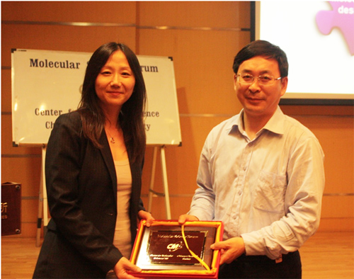 2013年5月8日,美国斯坦福大学鲍哲楠教授访问化学所并作题为“Recent Progress in Organic Electronics: Materials and Applications”的分子科学论坛报告。胡文平研究员主持了会议,张德清所长为鲍哲楠教授颁发了“分子科学论坛讲座教授”荣誉证书和奖牌。