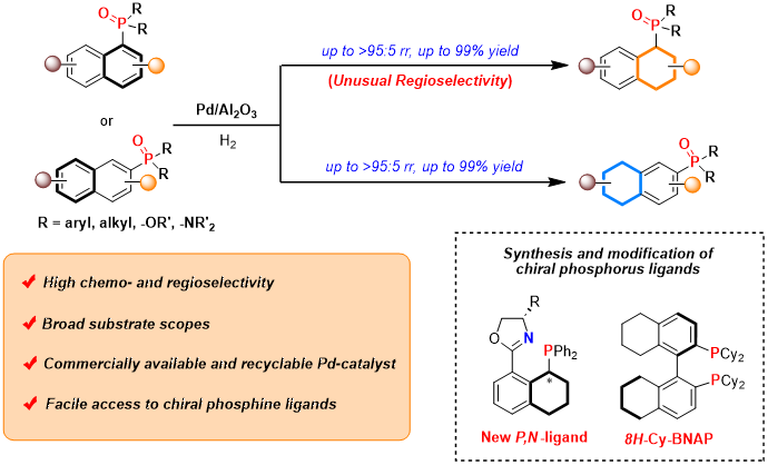 六元(手性)饱和杂环或碳环结构广泛存在于药物分子和天然产物中,具有重要的应用价值。芳烃催化氢化是构建此类环状结构最直接、高效的方法之一。然而,对于萘分子而言...
