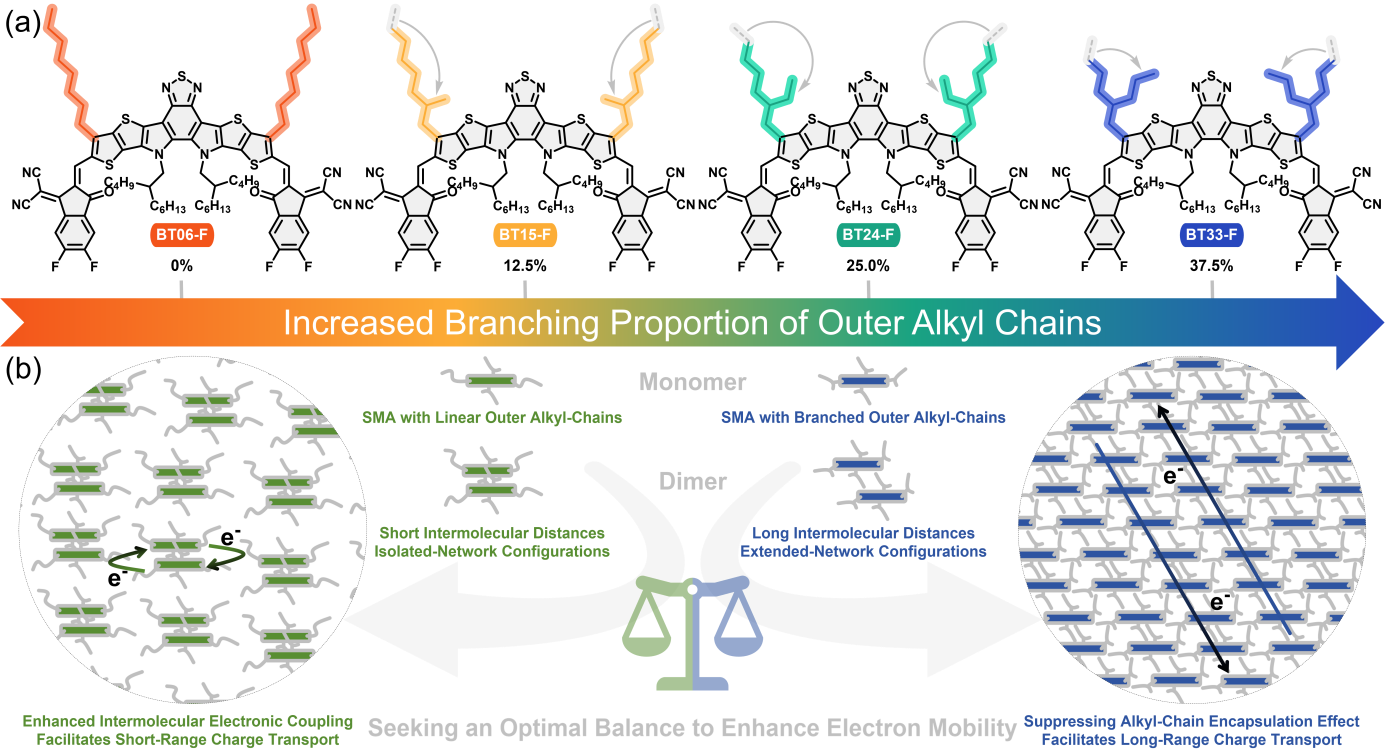 李永舫课题组在揭示外烷基链支化比例对A-DA′D-A型小分子受体包络效应与电荷传输性能的影响机制方面取得新进展