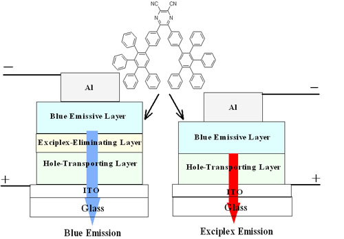有机电致发光器件由于其低成本、主动发光、响应快、易制备大面积及柔性显示等优点在平板显示与照明领域具有美好的应用前景。作为红、绿、蓝三原色之一,蓝光有机电致发光器件的发光效率目前还比较低且有待进一步提高,因而制备高效的蓝光器件成为研究人员关注的热点。