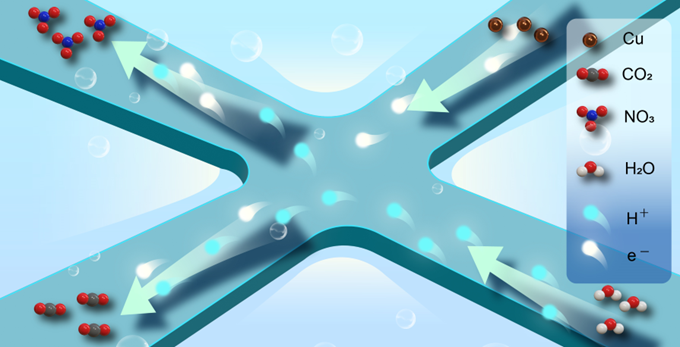 利用CO2和硝酸盐(NO3−)电催化合成尿素,是可持续碳、氮循环研究的前沿方向。然而,该反应涉及复杂的 18H+/16e−质子耦合电子转移(PCET)过程,导致反应动力学缓慢、C–N偶联效率低、副反应繁杂。因此,在电极界面上高效富集反应物并促进C–N偶联是实现高效尿素电合成的关键。