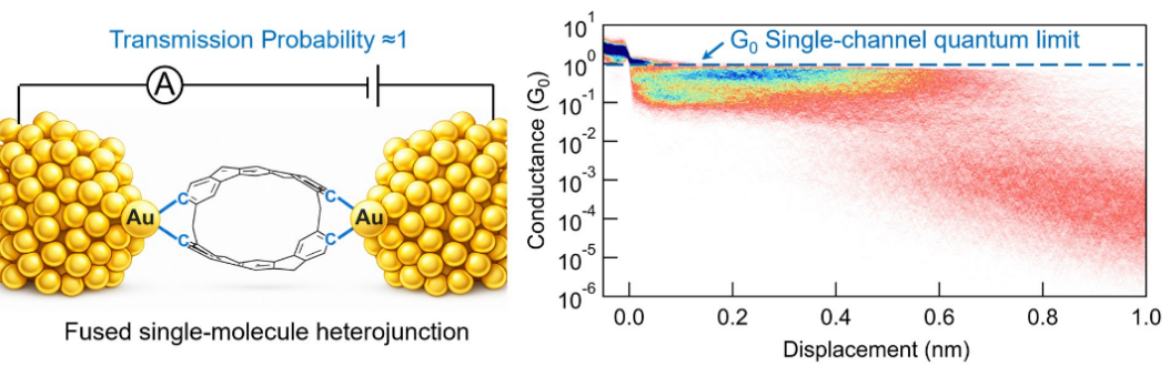 在纳米与亚纳米尺度电子器件中,电极与导电沟道之间的接触界面通常决定器件性能的上限。对于单分子结这类极限尺寸器件,金属–分子–金属界面属于典型的异质界面,电极与分子之间的能级与轨道失配会引发电子背散射,使器件电导远低于量子电导极限G0=2e2/ h。因此,如何抑制界面散射并实现接近理论极限的量子输运,一直是分子电子学领域的重要挑战。