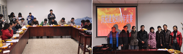 随后与会党员们进行了建党90周年知识竞赛,经过激烈的比赛,6名党员脱颖而出,许箭获得一等奖 ,李骎、王秀凤分别获得二等奖 ,李青、方艳艳、朱雪峰分别获得三等奖。
